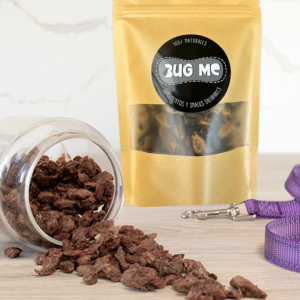 Los insectos que usamos tienen un sabor único y un aroma delicioso, además de los ingredientes naturales que usamos en nuestra cocina como banana, maqui y chia, son una receta para el éxito que deleitará a nuestros peludos.